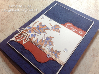 Met de prachtige blaadjesstempel maakte ik de blikvanger op de kaart.