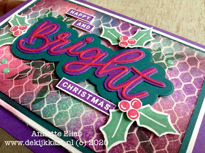 Wow, was dat even leuk om te maken! Lekker bont, lekker kliederen...En het levert een kaart op die met recht Happy and Bright is ;o) De set Peace & Joy is echt verrassend leuk en ik heb al bedacht dat deze echt met allerlei andere stempelsets te combineren is! Hoe leuk is dat! Ik heb echt zin om er mee verder te gaan!